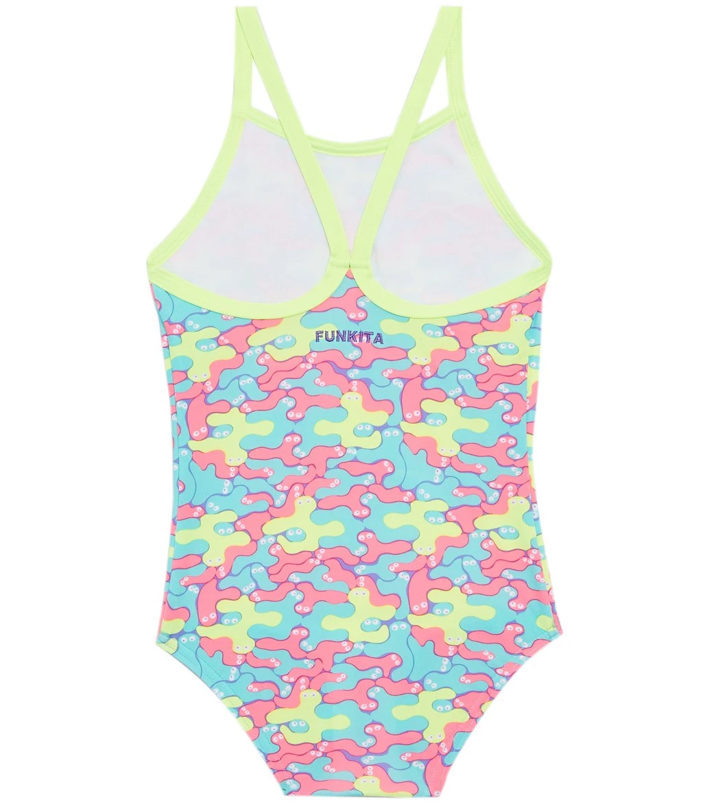 Explore everything in the water with the Funkita Toddler Girls’ Jelly Jubes Printed One Piece Swimsuit.