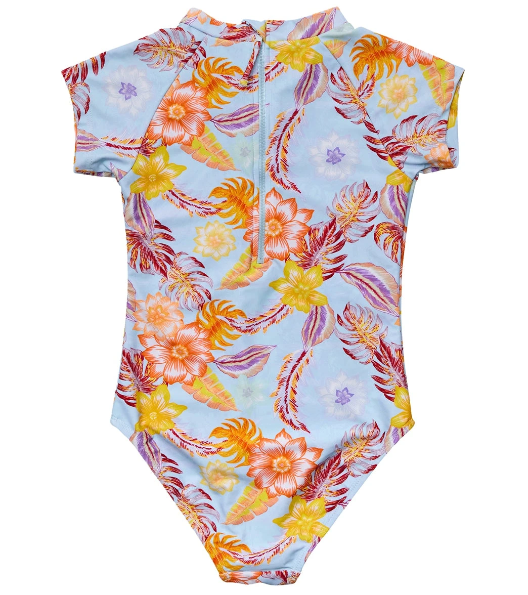 Get ready to hit the waves as soon as the plane lands with the Snapper Rock Girls’ Boho Tropical Short Sleeve One Piece Swimsuit (Big Kid). The girls rashguard suit takes inspiration from paradisal islands, with UPF 50+ incorporated into the sustainable swimwear fabric for a safe, easy day of chilling on the water.