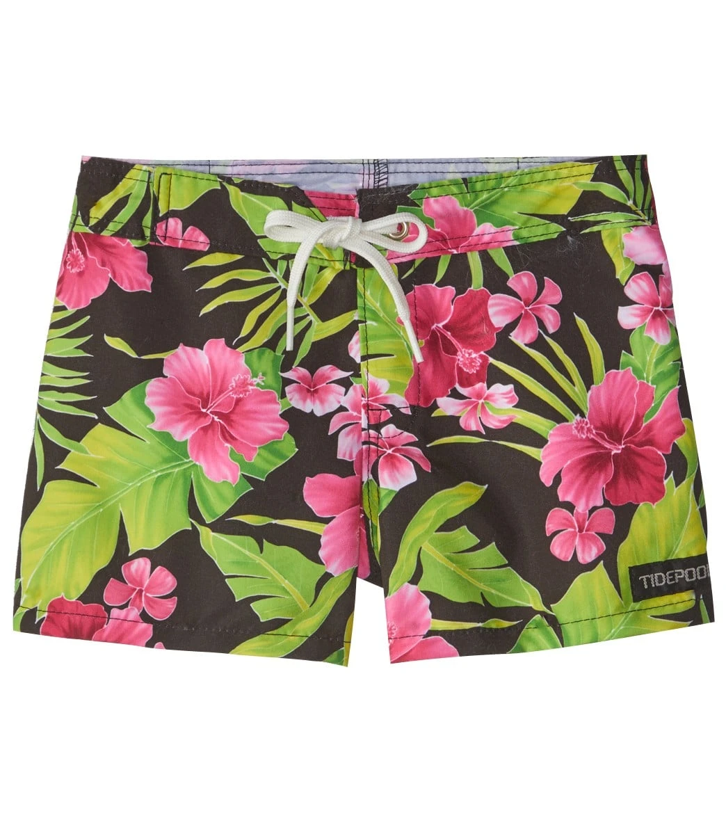 Board shorts aren t just for boys. The Tidepools Girls Hibiscus Boardshort comes a fun, ready-for-summer print. An adjustable drawstring ensures a perfect fit.