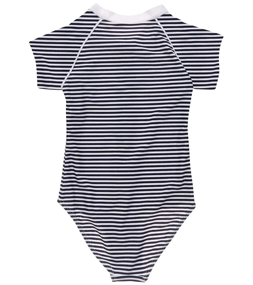 Looks cute and performs well in the water, the Snapper Rock Girls’ Nautical Stripe Short Sleeve One Piece Surf Suit is your kid’s favorite!