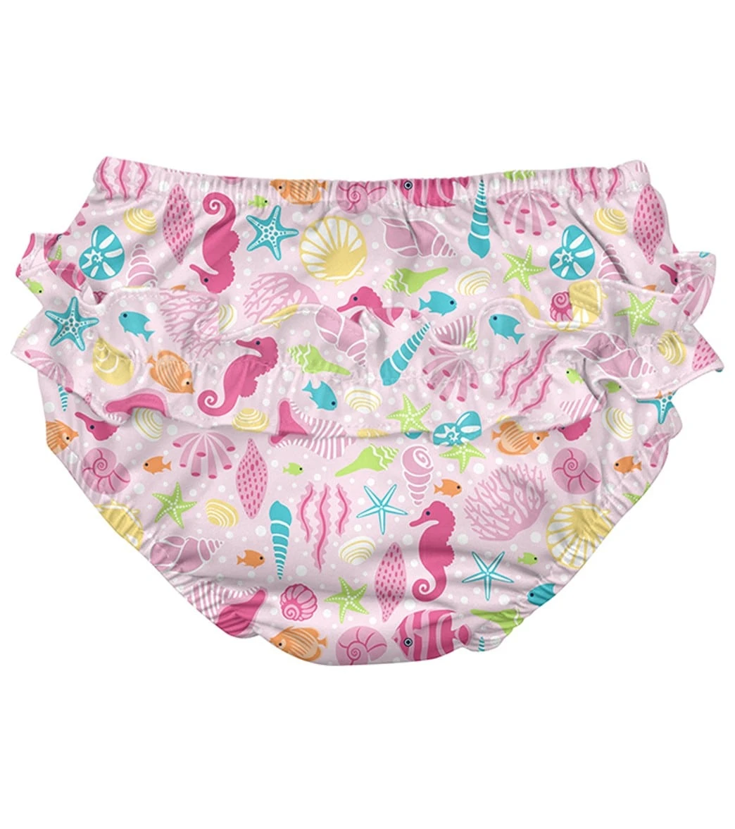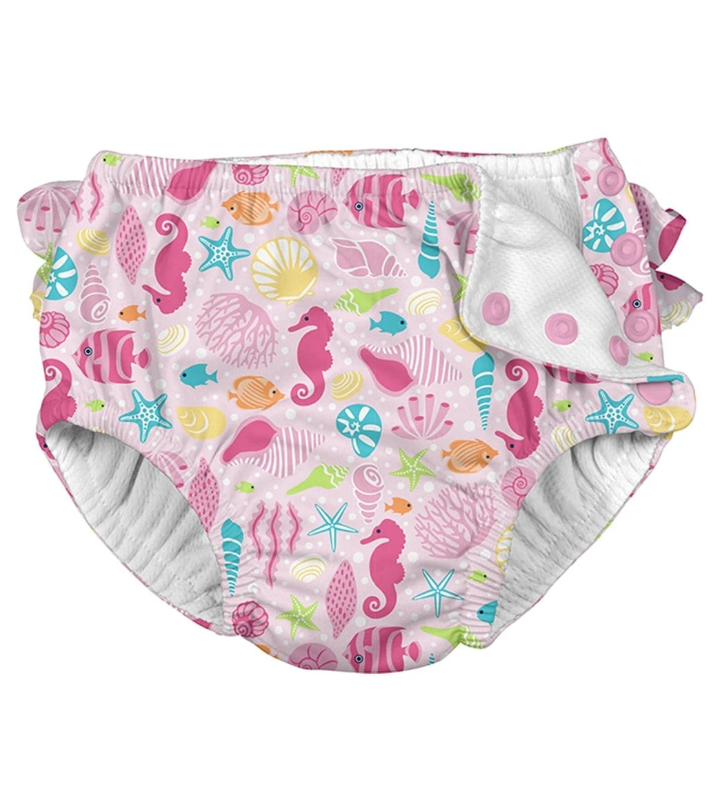 Let your kiddo roam free by the beach with the iPlay Girls’ Sealife Ruffle Snap Swim Diaper (Baby, Toddler).