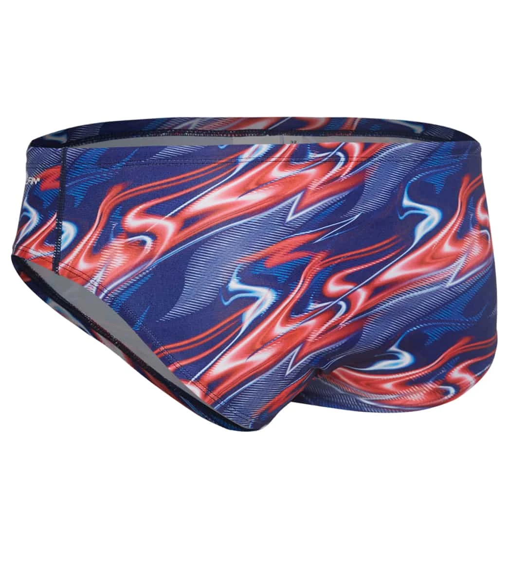 Train to be the best in the Dolfin Reliance Men’s Inferno Team Print All-Over Racer Brief Swimsuit.