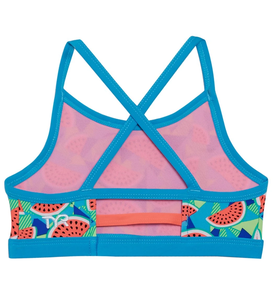 Get out there in the TYR Girls’ Tutti Fruitti Trinity Bikini Top.